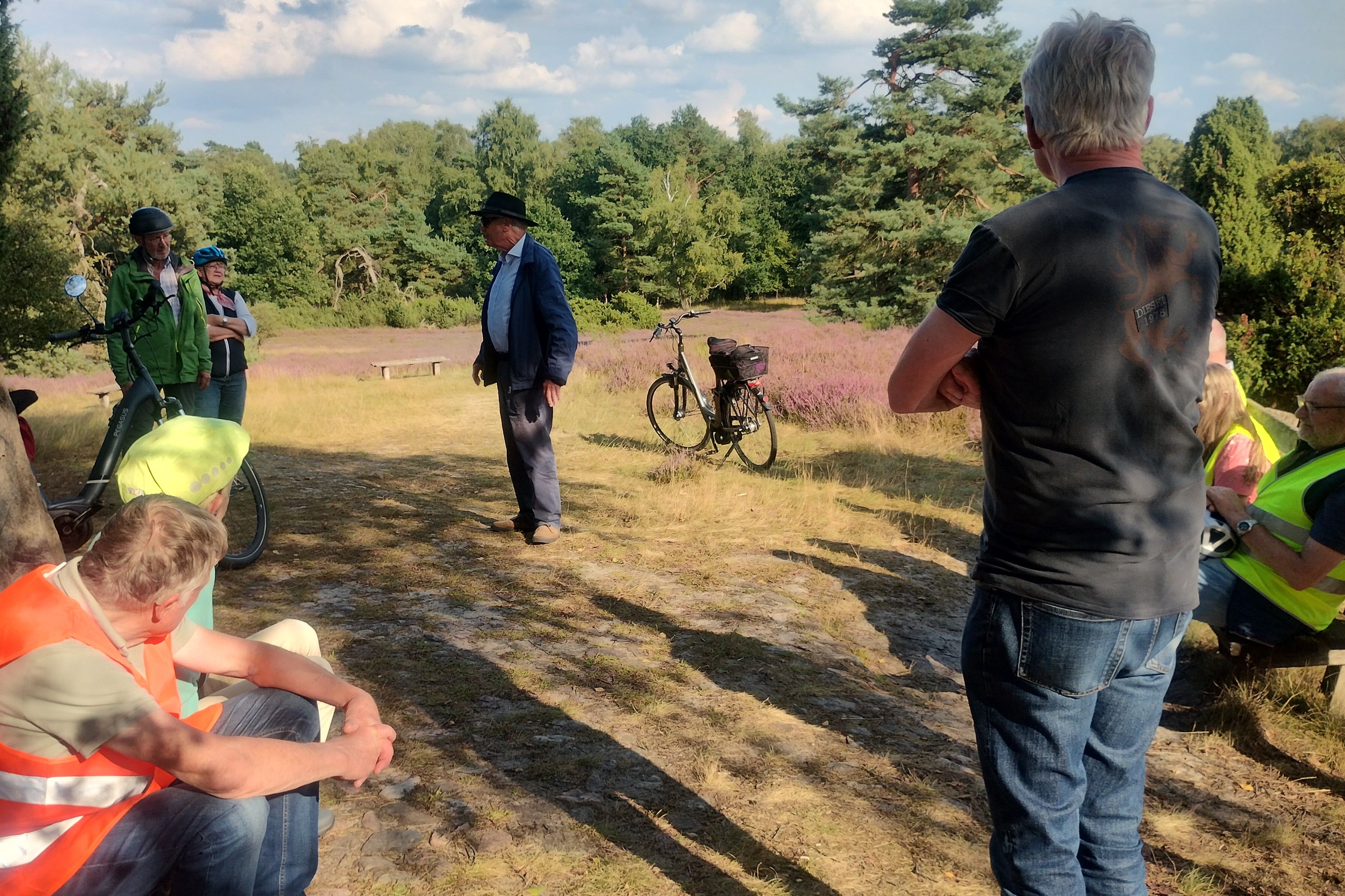In diesem Jahr begrüßte Hermann Löns selbst alias Helga Seebeck die Interessierten im Lönszimmer des Heidemuseums. Anschließend führte die Route zum Grundlosen See, wo Wolfgang Brandes aus den Moorgeschichten des Schriftstellers las. Zum Abschluss besuchte die Fahrrad-Gruppe die Tietlinger Heide mit den Gräbern von Hermann Löns und Wilhelm Asche. Dessen Neffe Cord Asche berichtete aus dem Leben des Bad Fallingbosteler Landwirts, der selbst auch Gedichte und Lieder über die Heide verfasste. Schließlich stiftete er aus Bewunderung für Hermann Löns das Gelände, auf dem später die beiden Gräber errichtet wurden.