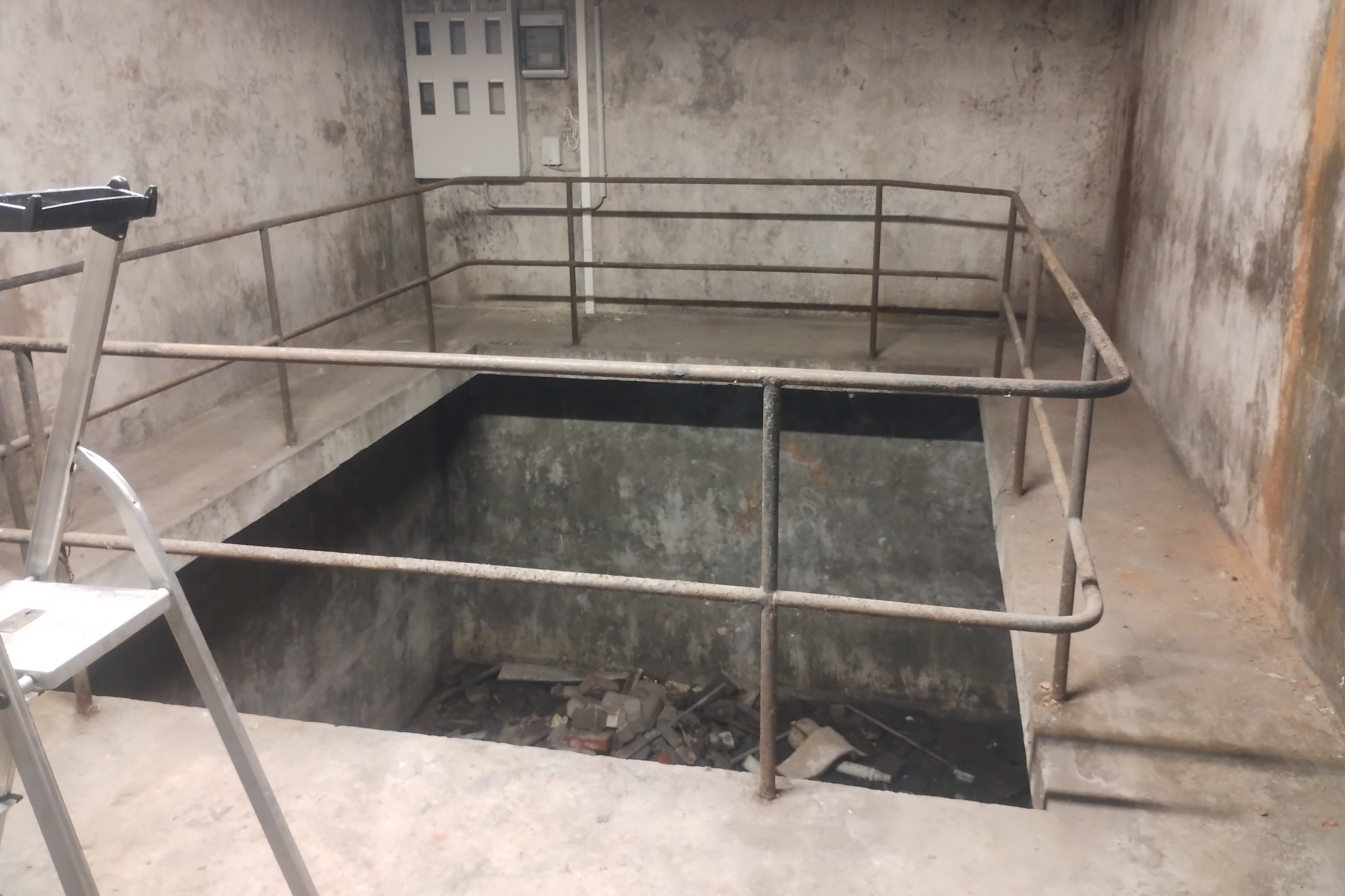 "Ja", schmunzelt einer der Eigentümer, "Gartenarbeit ist hier ab und an nicht einfach." Immer wieder würde man mit dem Spaten auf Beton stoßen. Versorgungsleitungen in Schächten umgeben das Gebäude, das viele Funktionen hatte: Hauptpförtner mit Zugangskontrolle, Hauptzufahrt, Sanitätsstation und Feuerwehr, und wahrscheinlich wartete hier auch der kleine Trupp von Maurern auf seinen Einsatz, wenn im Werk wieder eine Explosion eine Ausblaswand herausgeschleudert hat.