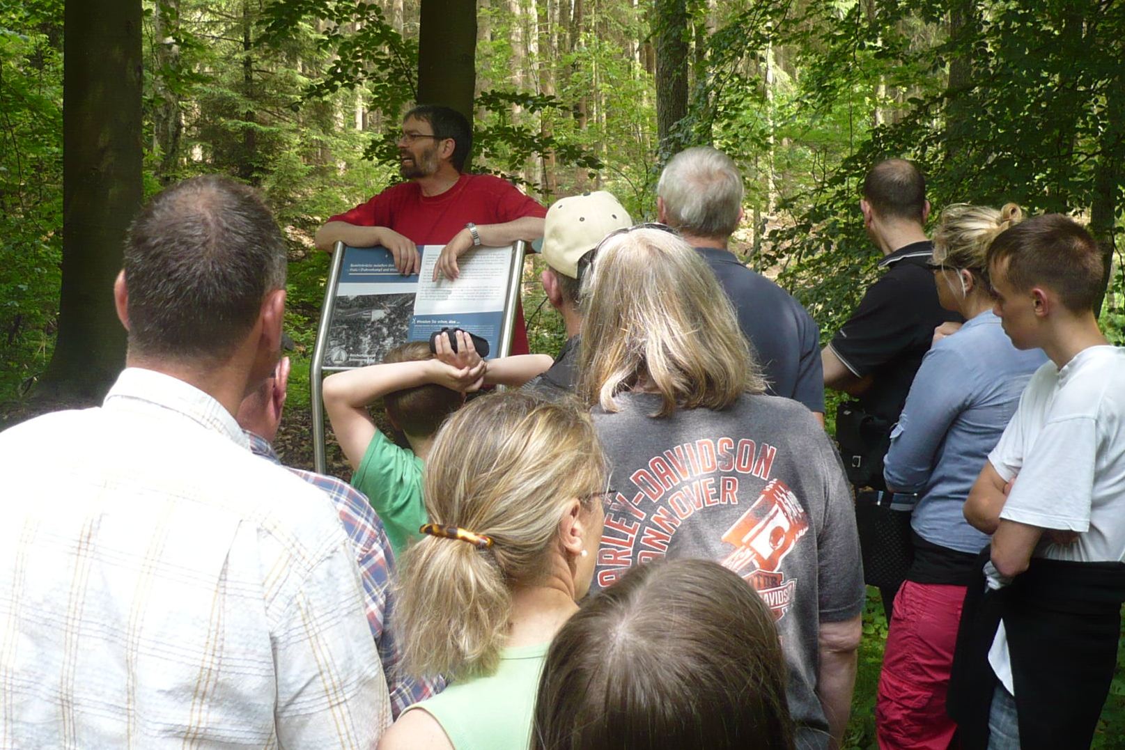 06/2015 - Die Führungen durch das "Freilichtmuseum" EIBIA im Frühsommer haben ihre eigenen Vorteile. Das Wetter ist mit hoher Wahrscheinlichkeit gut, und die Natur zeigt deutlich, wie sie sich über Jahrzehnte das Gelände der ehemaligen Pulverfabrik zurückerobert hat. Bei der FORUM-Führung im Juni führte der Bomlitzer Historiker Thorsten Neubert-Preine die Gruppe der Interessierten auf der Nord-Route durch die EIBIA: Vom Sportplatz Benefeld an der alten Zentralwerkstatt vorbei auf die alte Werkstraße.