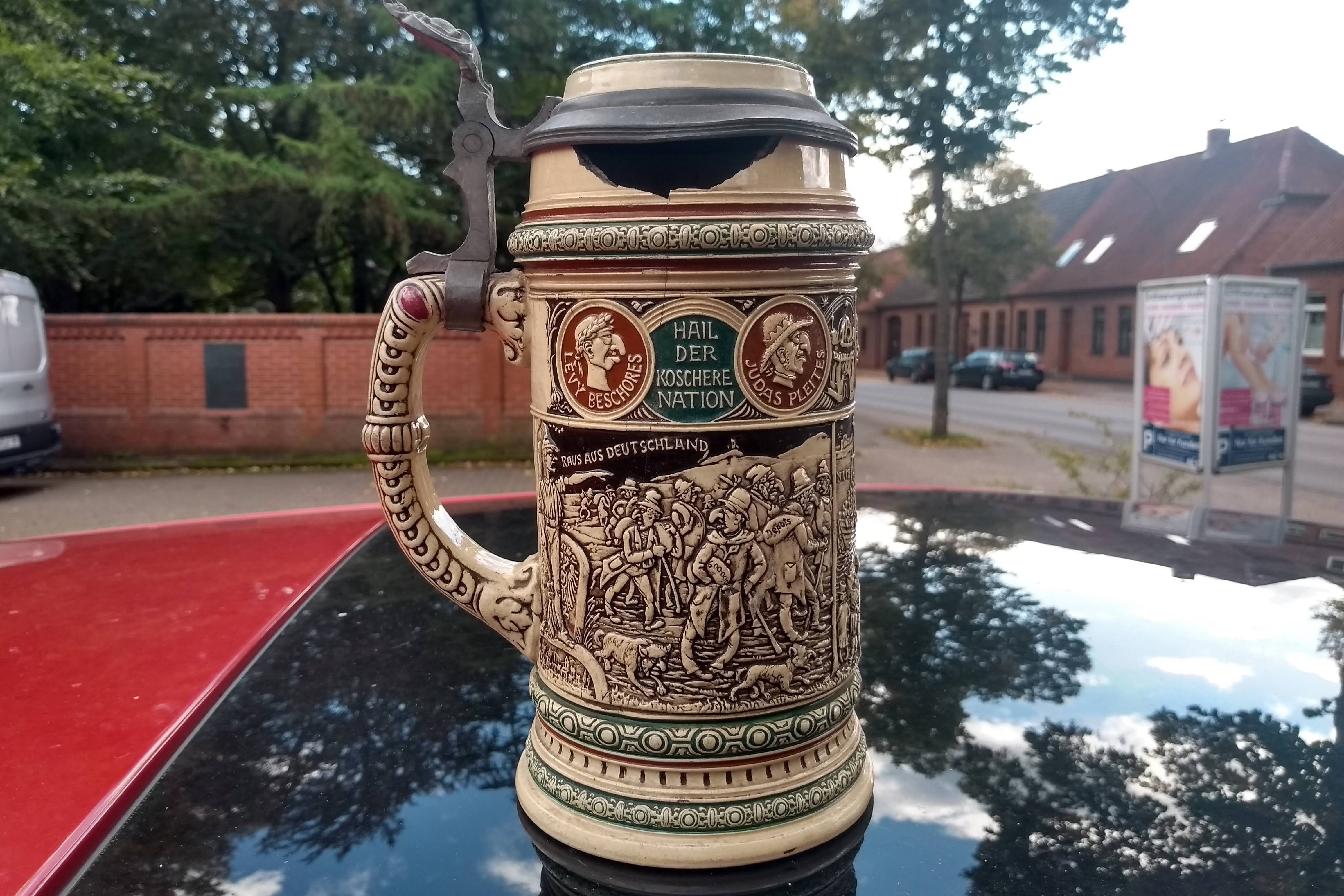 Der Krug ist eines von wenigen Relikten des Vereins. Er zeigt allerlei zynische Verunglimpfungen, stellt Jüdinnen und Juden mit großen Hakennasen dar und "schmückt" das ganze mit antisemitischen Spruchbändern. Möglicherweise wurde aus ihm gemeinschaftlich getrunken, oder vielleicht hatte auch jedes Mitglied einen dieser Krüge.