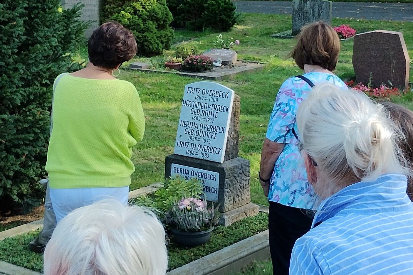 Auf dem Rückweg besuchte die Gruppe das Wohnhaus der Overbecks und ihr gemeinsames Grab auf dem Friedhof Bremen-Walle. Als Gruß aus der alten Heimat hatten die Gäste aus Walsrode eine Schale mit Heidekraut mitgebracht.