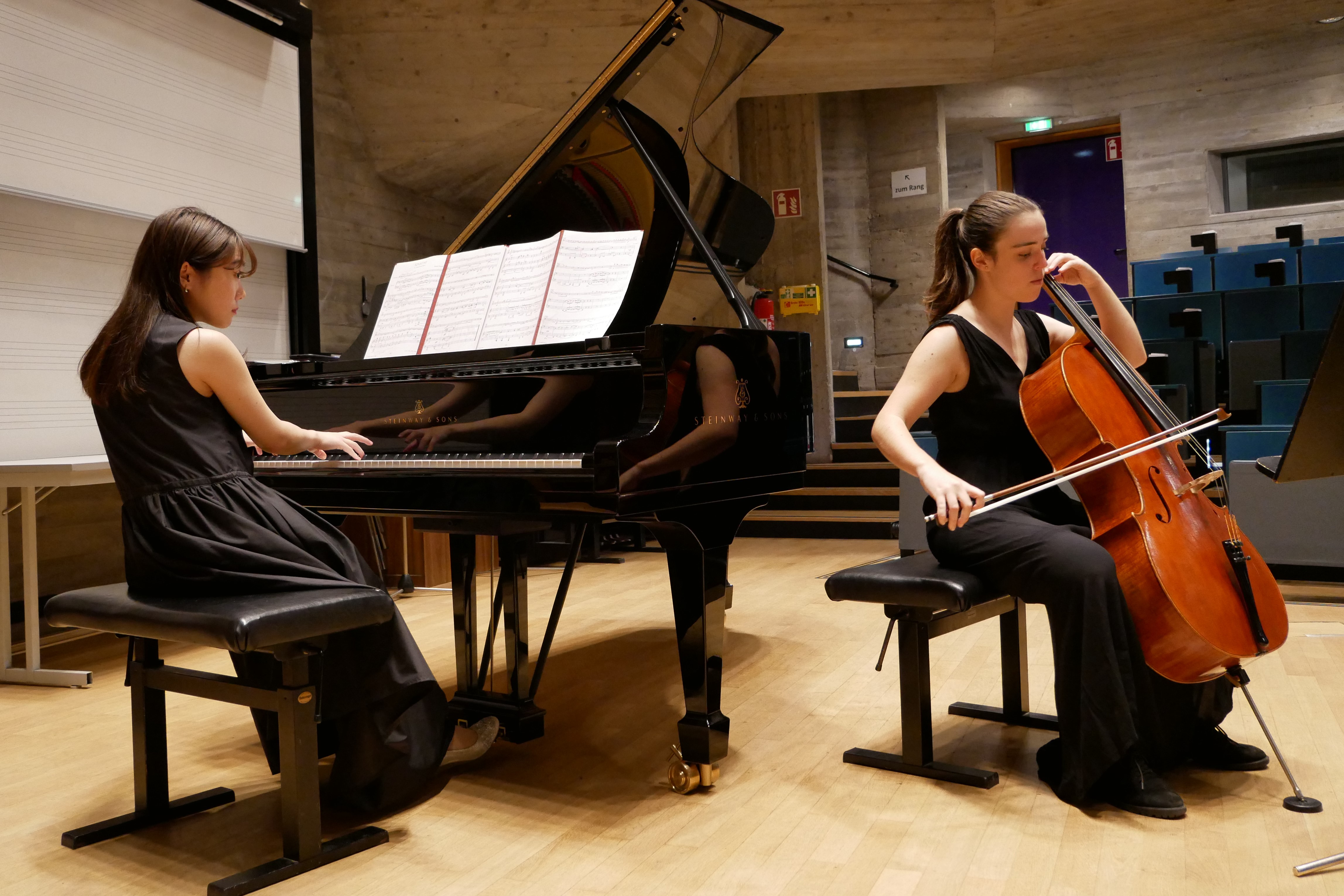 02/2023 - Mit Erzählfreude und großem musikalischen Ausdruck begeisterten zwei junge Musikerinnen die Gäste beim 28. "Beflügelt!"-Konzert von FORUM und Waldorfschule Benefeld. Die Cellistin Cecilia Camón Botella und ihre Klavierpartnerin Mayako Higuchi brachten zunächst das Adagio und Allegro in As-Dur von Robert Schumann zu Gehör und vermochten im ersten Satz eine träumerische Stimmung zu erzeugen, die dann im schnellen zweiten stürmisch daherkommenden Satz wie weggeweht wurde.
