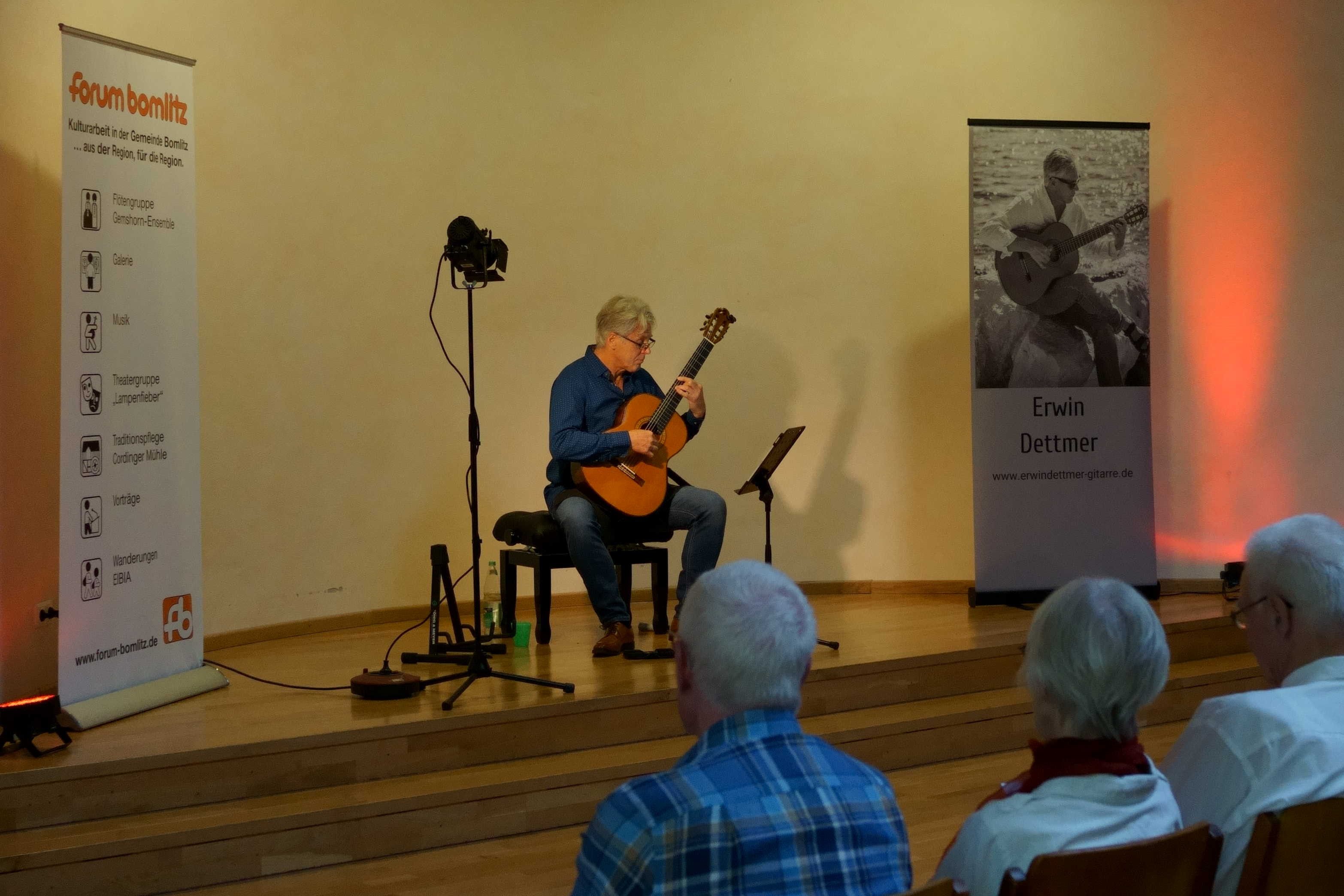 09/2023 - Der Konzertgitarrist Erwin Dettmer aus Bad Fallingbostel beherrscht mit Leidenschaft und virtuoser Technik sein Instrument. Die Gäste genossen in seinem FORUM-Konzert eine große Vielfalt von lateinamerikanischen und spanischen Klängen und Rhythmen, die von romantischen Balladen bis zu lebhaften Tänzen reichte. Sein Repertoire umfasste bekannte Werke wie auch weniger bekannte Stücke aus einer reichen musikalischen Tradition.