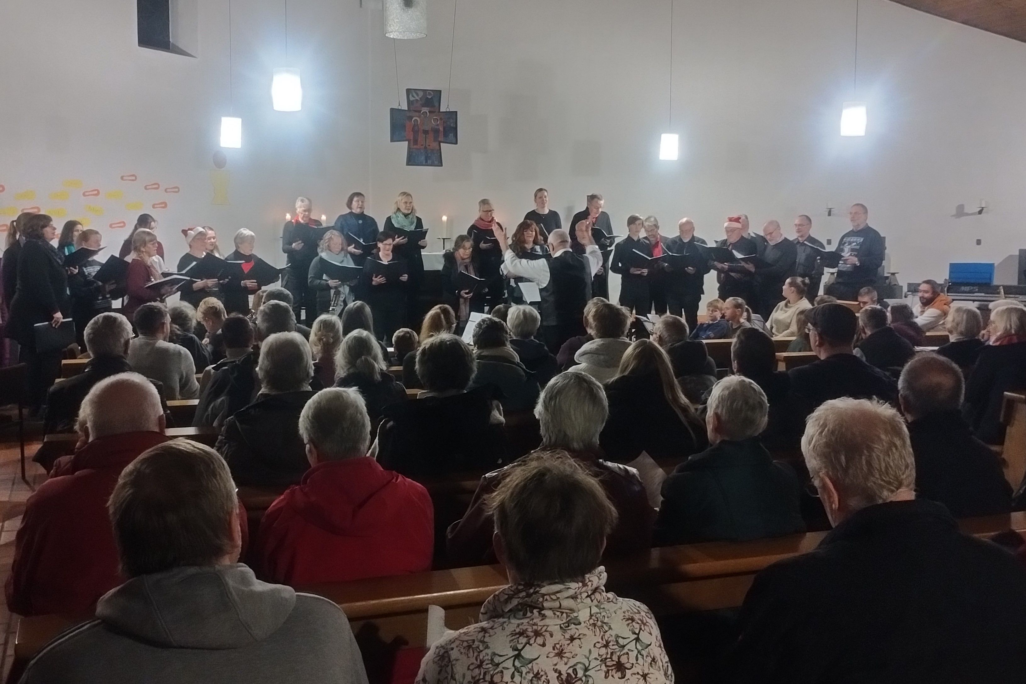 12/2024 - Als Höhepunkt sangen am Schluss die Gäste in der voll besetzten Heilig-Geist-Kirche in Benefeld gemeinsam mit dem mehr als dreißigköpfigen Chor der katholischen Gemeinde "Fröhliche Weihnacht". Die Kirche war mit Kerzen beleuchtet, und vorher hatte Diakon Klaus Hartwig alle musikalischen Register seiner Gemeindearbeit gezogen: Kinderchor, Gospelchor Ubuntu, Bläserkreis, Rockband "Kirchenpanik" und als Gäste die Akkordeongruppe "Golden Oldies" beschwingten und brachten adventliche Stimmung, die jeden und jede ergriff.