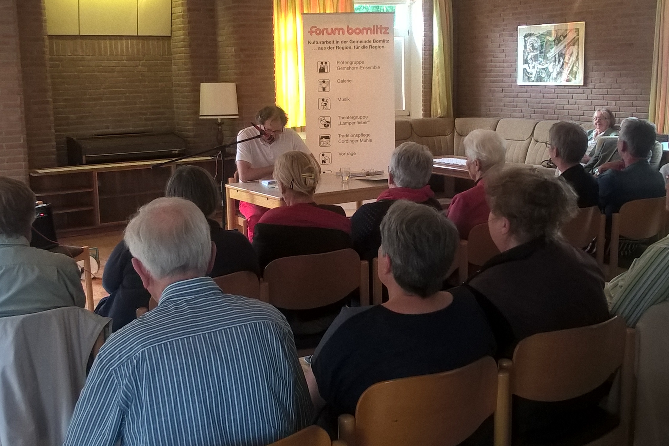 11/2018 - So, wie heute Hochdeutsch gesprochen wird, war vor einhundert Jahren Plattdeutsch die "Landessprache" in der Region Bomlitz. "Wenn man sich das Leben und die Arbeit z.B. an der früheren Cordinger Mühle vorstellt, muss sich dabei alles auf Plattdeutsch abspielen, sonst stimmt das Bild nicht", erläutert Torsten Kleiber vom FORUM. Der Kulturverein will deshalb dazu beitragen, dieses regionale Kulturgut vorzustellen und zu erhalten. Den Auftakt machte Gudrun Fischer-Santelmann, die im Cordinger Müllerhaus Kurzgeschichten aus ihrem plattdeutschen Buch "Zepollen-Schick" vortrug.
