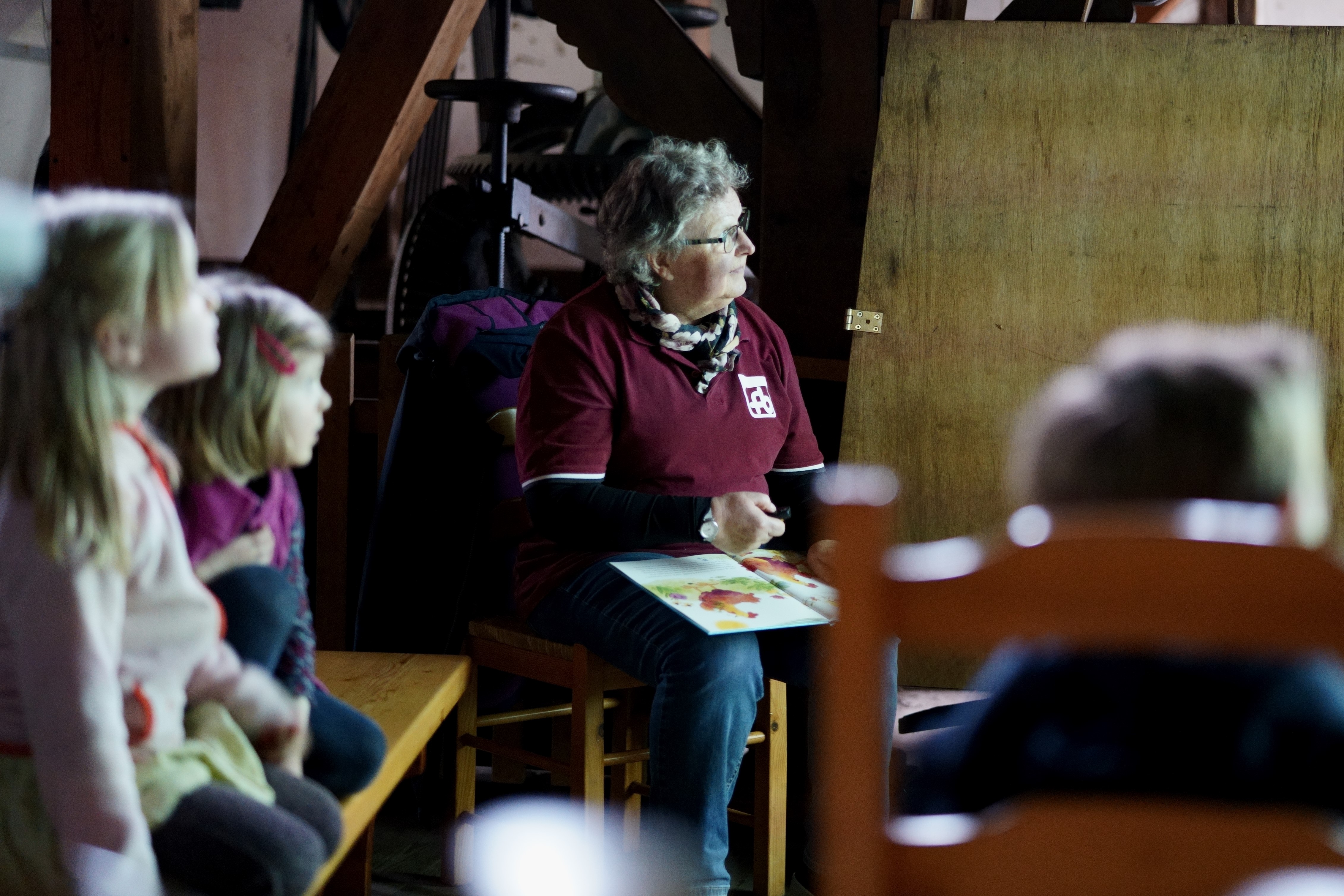 04/2024 - Für das diesjährige Bilderbuchkino hatte sich Anette Klug vom FORUM die Geschichte von "Wilma Wunderhuhn" von Grit Poppe und Annika Sauerborn ausgesucht und die Cordinger Mühle wieder in einen Kinosaal für Kinder verwandelt. Die Geschichte handelt vom Huhn Wilma, das keine Eier legt, sondern Würfel. Die anderen Hennen finden das sonderbar, und auch Wilma möchte eigentlich einfach nur dazugehören. Schließlich macht Wilma beim Beklecksen der Würfel-Eier eine tolle Entdeckung.
